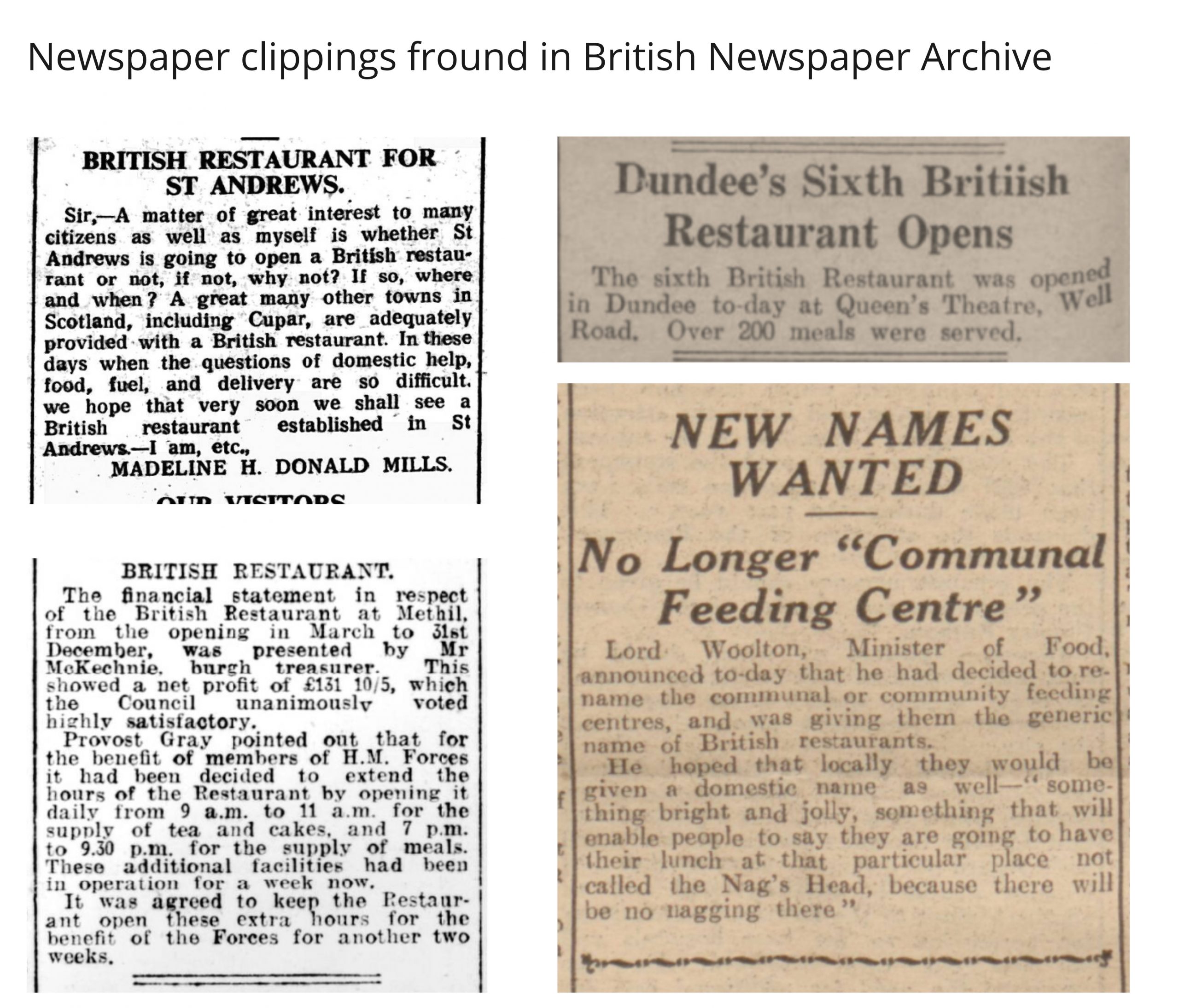 British restaurants – newspaper clippings